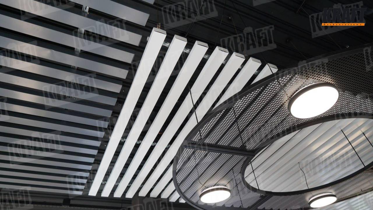 Metalowe listwowych sufitów podwieszanych z wykończeniem drewnopodobnym lub monochromatycznym, możliwość łączenia kolorów i formatów – to wszystko daje ogromne możliwości aranżacyjne. Światło przenikające przez sufit lub współgrające z jego geometrią tworzy miękkie, rozproszone oświetlenie, które wzmacnia atmosferę przytulności albo dynamiki – w zależności od koncepcji.