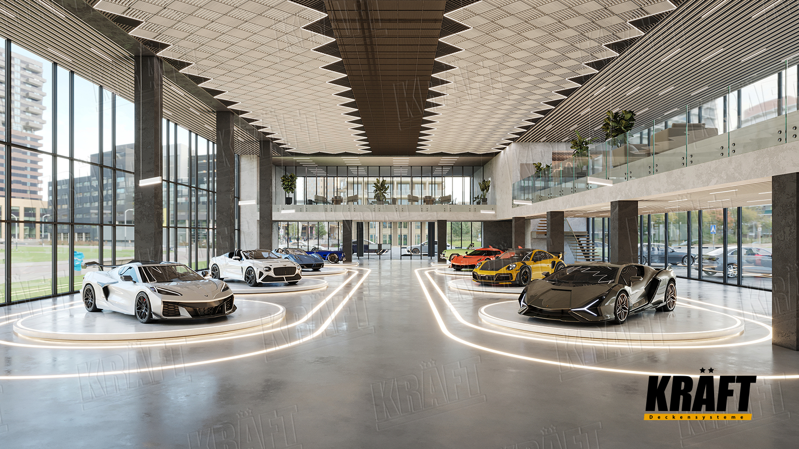 Podwieszane sufity w salonie samochodowym: designerskie rozwiązania nadające indywidualność
