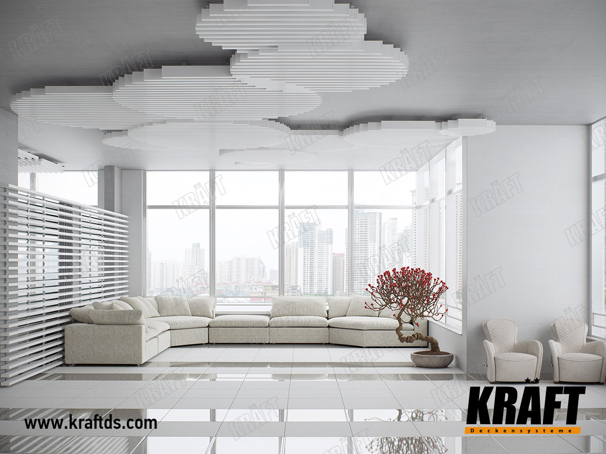 Ostatnio dość często na sufitach można spotkać tak zwane "wyspy". Dlaczego nie użyć listwy jako materiału do wykonania takich "wysp"?  Jeśli listwy mają różną wysokość, można ukryć w nich oprawy KRAFT Led. Listwa może być również używana jako przezroczysty rozdzielacz do tworzenia granic pomieszczeń.