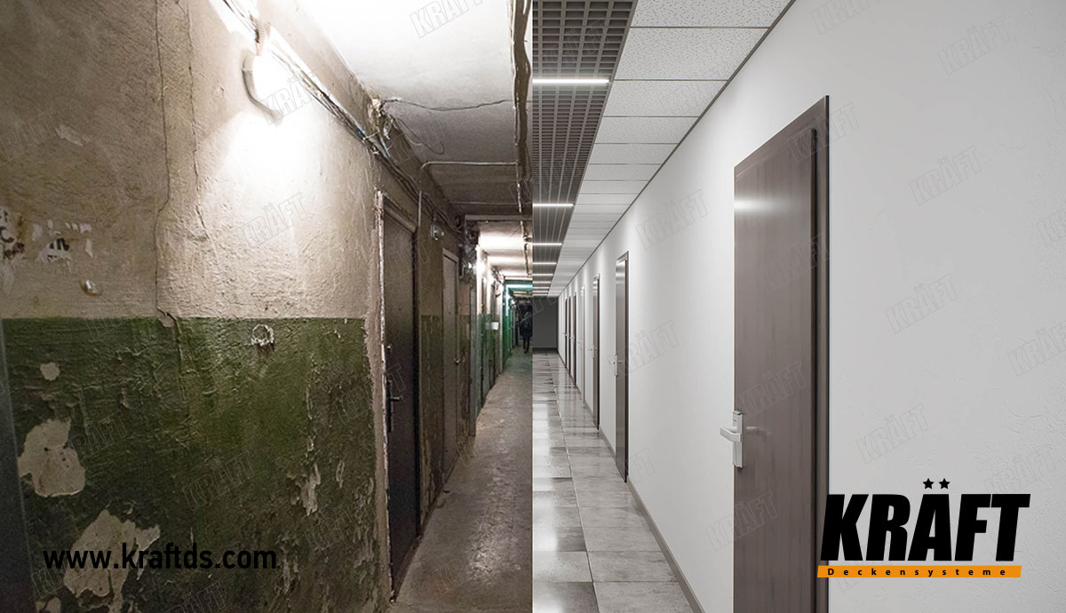 Sufity listwowe KRAFT w przestrzeni marketu z wyposażeniem łazienkowym