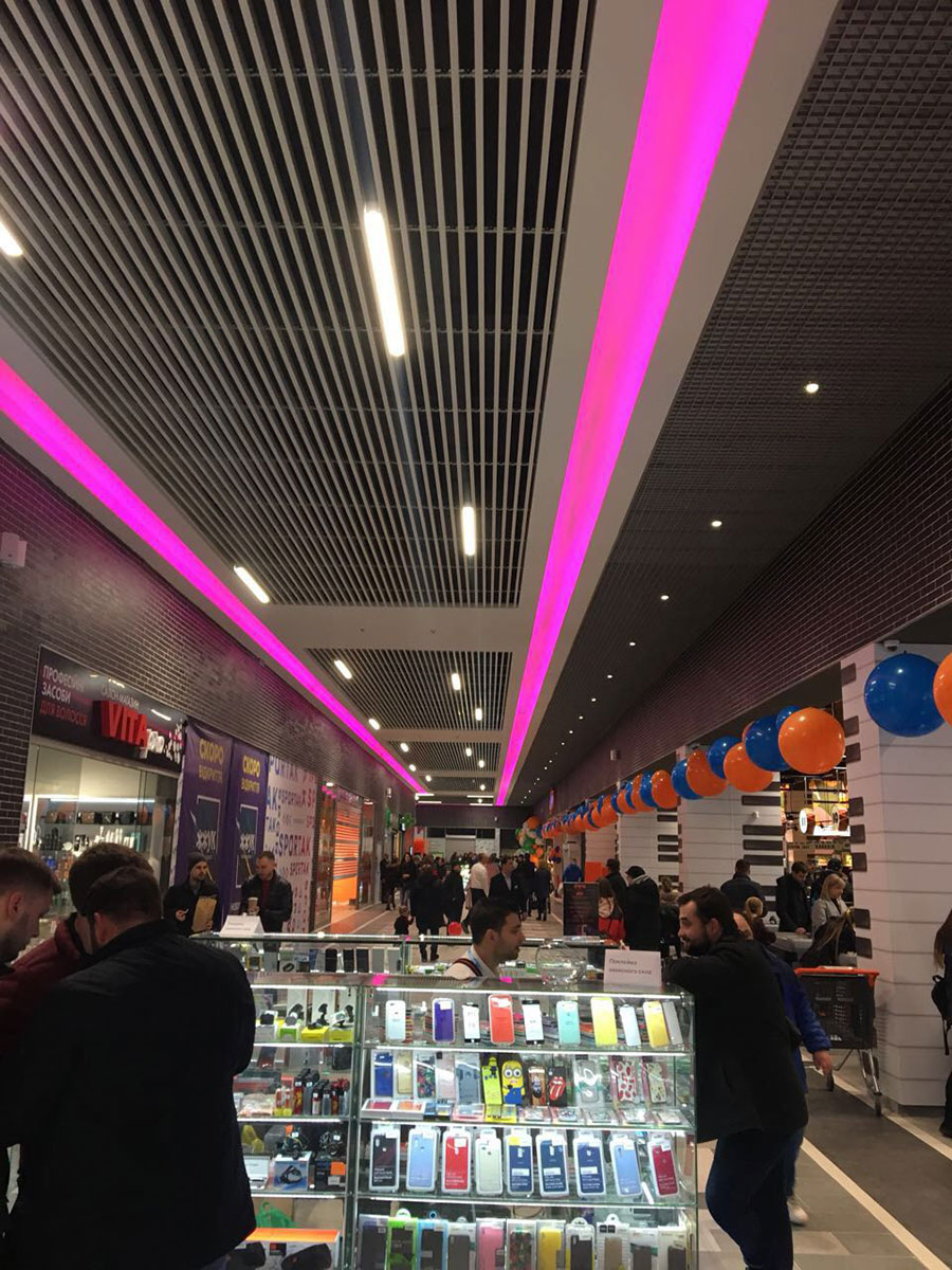 Listwowy sufit plaski + LED w centrum handlowym ParksMall (9 zdjęć)