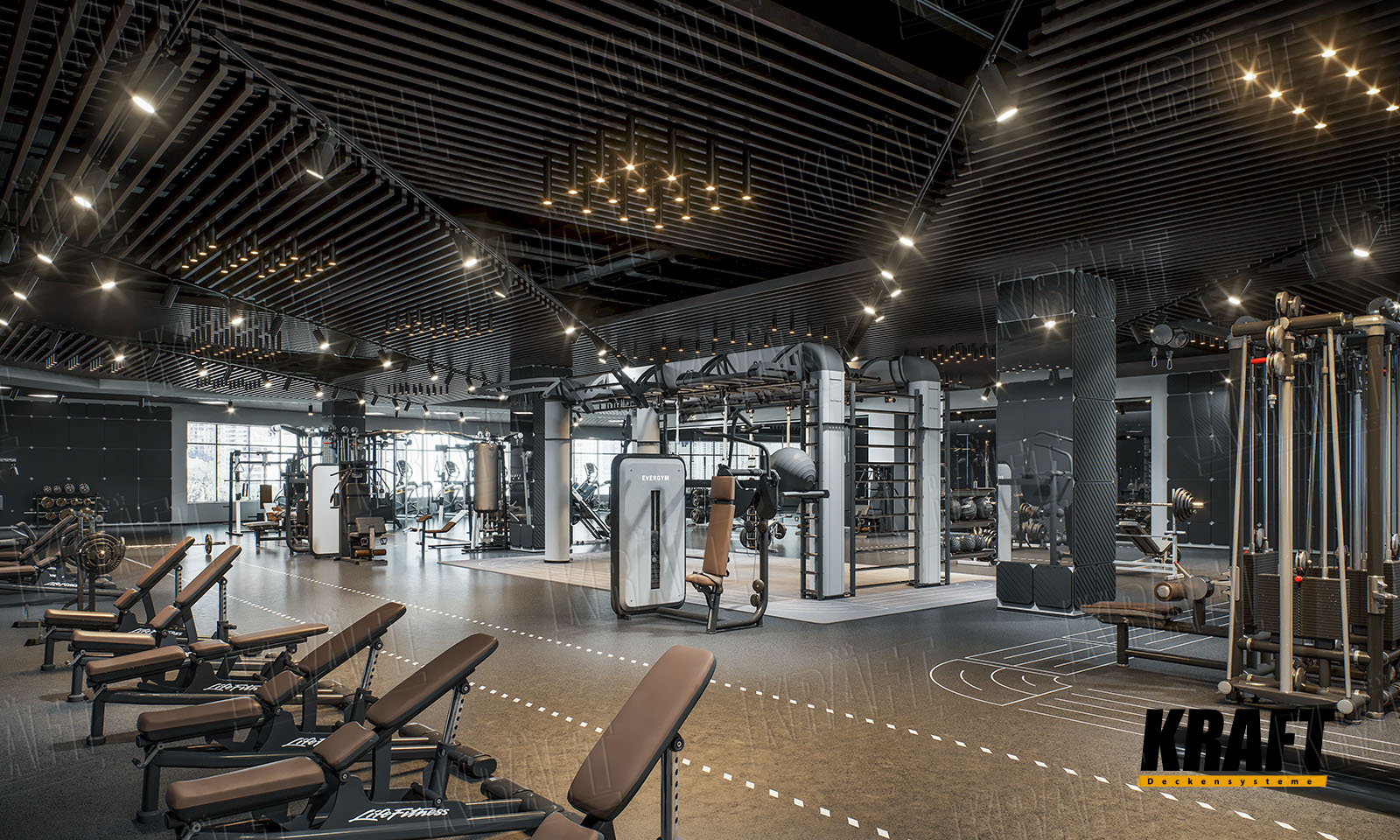 Sufity listwowe KRAFT w przestrzeni marketu z wyposażeniem łazienkowym