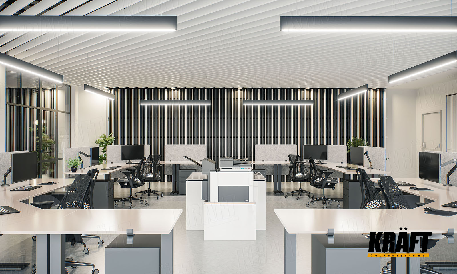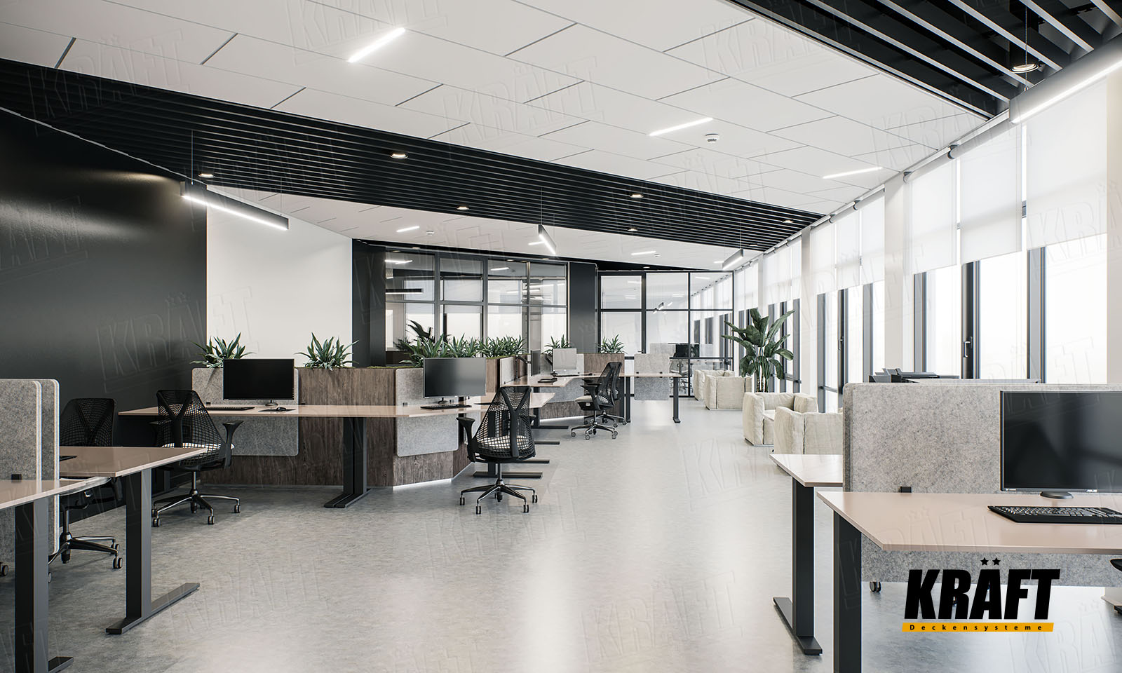 Harmony of contrast and style: KRAFT ceiling solutions in black and white offices