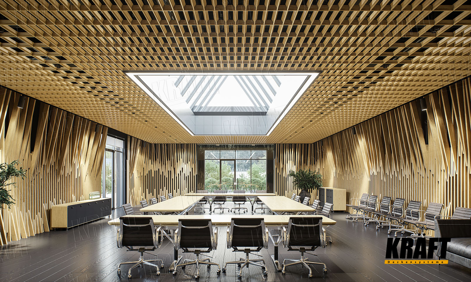 Cube-Shaped Rail Suspended Ceiling KRAFT in Modern Interiors: Design That Works for Comfort and Trust