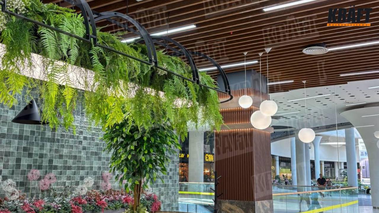 Restauracje to dziś nie tylko jedzenie. To atmosfera, komfort i estetyczna przyjemność. Kiedy gość wchodzi do lokalu, od razu zanurza się w przestrzeń, która buduje nastrój i nadaje rytm całemu doświadczeniu. Właśnie tak działa wnętrze restauracji w centrum handlowym Respublika Park, gdzie aranżacja zachwyca połączeniem nowoczesności i gościnności. Kluczowym akcentem projektu jest sufit podwieszany z listwy kubicznej KRAFT, wykonany w dwóch odcieniach — ciepłego drewna i klasycznej bieli (RAL 9003).