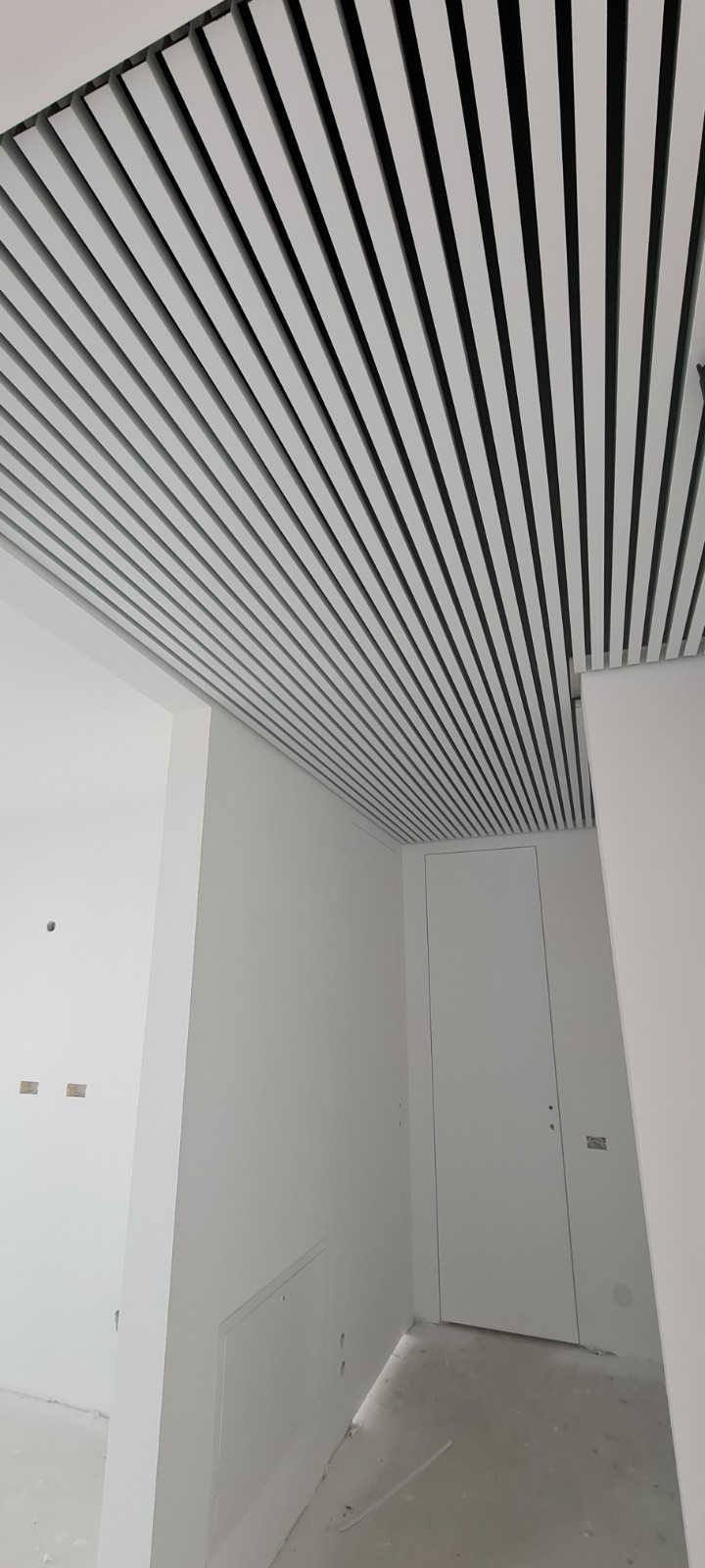 3. Simplicity and speed of installation. Slatted ceilings are easy to install even on your own. And a professional team can mount ceilings even in a large apartment in just one day.