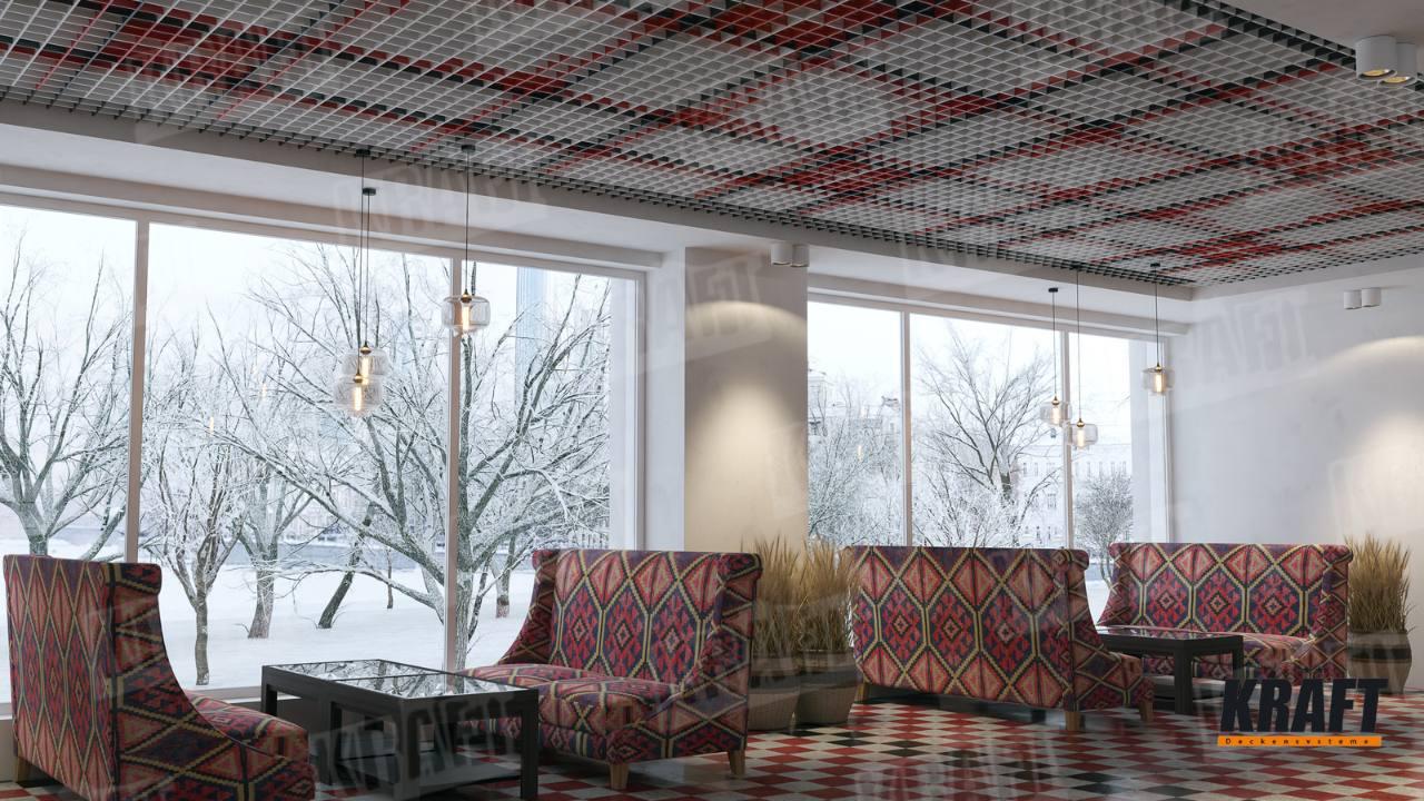 Wide range of cell sizes — the ability to choose cell sizes from 50×50 mm to 200×200 mm makes it possible to adapt the ceiling to any design task and functional requirement.