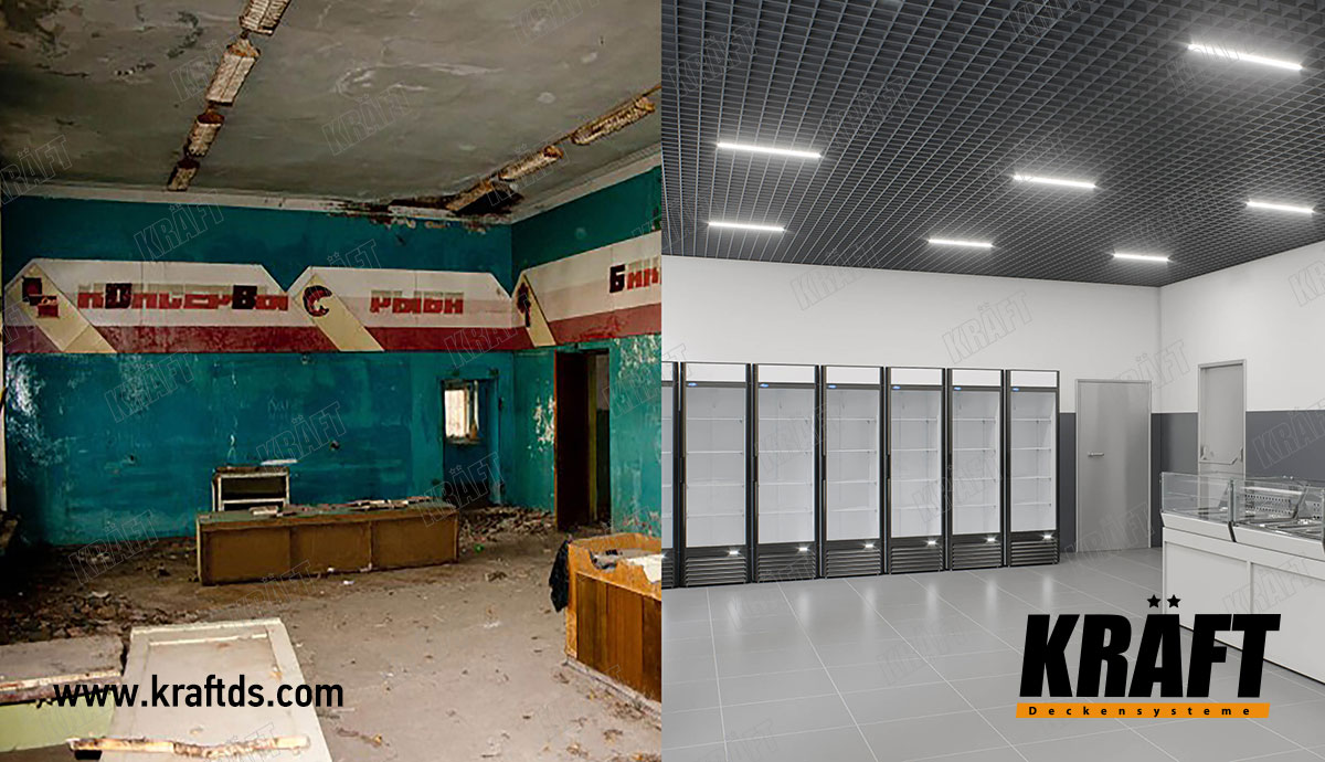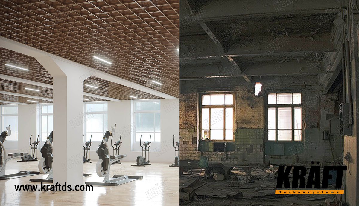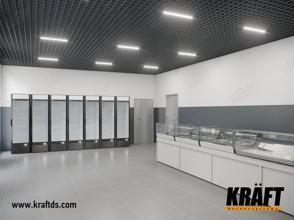 Cube-Shaped Rail Suspended Ceiling KRAFT in Modern Interiors: Design That Works for Comfort and Trust