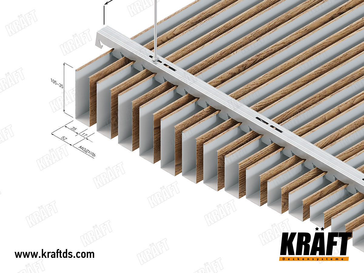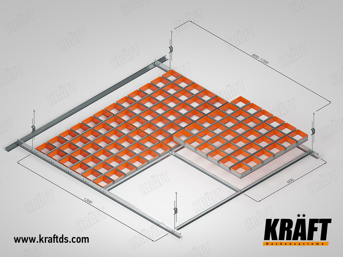 Cube-Shaped Rail Suspended Ceiling KRAFT in Modern Interiors: Design That Works for Comfort and Trust