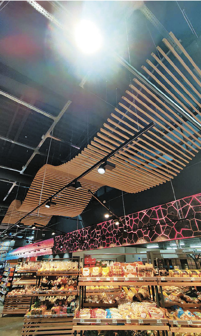 Sufity listwowe KRAFT w przestrzeni marketu z wyposażeniem łazienkowym